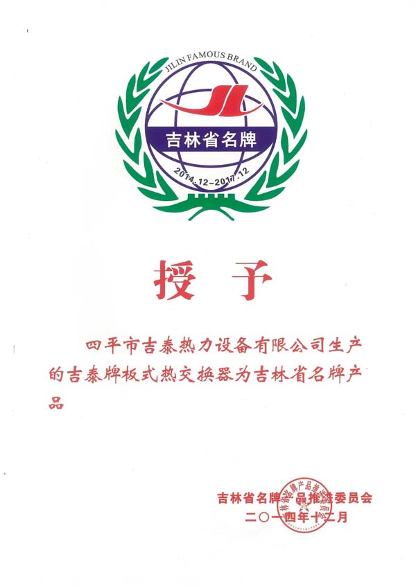 • SIPING JITAI HEAT EXCHANGE EQUIPMENT CO.,LTD. 四平市吉泰熱力設(shè)備有限公司